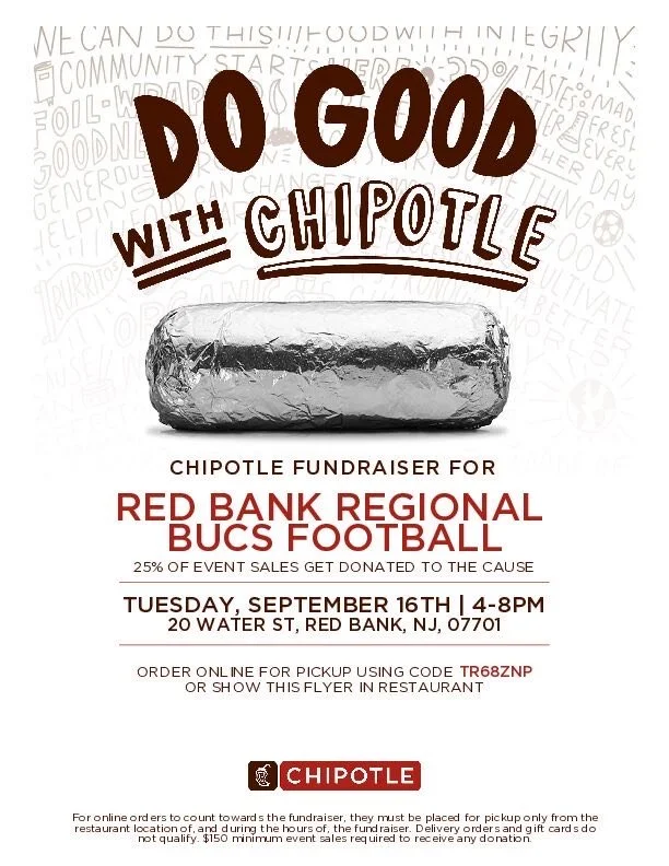 Oct 20 RBR Football Shake Shack Fundraiser Monday, October 20, 2025 11:00 AM 10:00 PM 180 New Jersey 35 Eatontown, NJ, 07724 United States (map) Google Calendar ICS View Event → Oct 13 RBR Football Chick Fil A Fundraiser Monday, October 13, 2025 5:00 PM 7:00 PM 42 New Jersey 36 Eatontown, NJ, 07724 United States (map) Google Calendar ICS View Event → Sep 16 RBR Football Chipotle Fundraiser Tuesday, September 16, 2025 4:00 PM 8:00 PM Chipotle (map) Google Calendar ICS View Event → Sep 2 RBR Football Five Guys Fundraiser Tuesday, September 2, 2025 5:00 PM 9:00 PM Five Guys Burgers and Fries (map) Google Calendar ICS View Event → Aug 30 Bucs Football Car Wash Saturday, August 30, 2025 10:00 AM 1:00 PM Google Calendar ICS Support the RBR Buc Football team! View Event → Aug 26 RBR Bucs Football & Cheer: Coaches and Parents Preseason Kickoff Party - Please RSVP Via Text: 973-809-5413 Tuesday, August 26, 2025 6:30 PM 7:30 PM Red Rock Tap + Grill (map) Google Calendar ICS RSVP Via Text: 973-809-5413 View Event → Aug 22 Varsity Scrimmage VS Holmdel Friday, August 22, 2025 6:30 PM 9:30 PM Red Bank Regional High School (map) Google Calendar ICS View Event → Aug 18 Varsity Scrimmage VS Freehold Boro Monday, August 18, 2025 9:00 AM 12:00 PM Red Bank Regional (map) Google Calendar ICS View Event → Dec 3 Senior Banquet Tuesday, December 3, 2024 5:00 PM 8:00 PM Google Calendar ICS Time and location TBD View Event → Oct 1 Chipotle Fundraiser Tuesday, October 1, 2024 4:00 PM 8:00 PM Chipotle (map) Google Calendar ICS RED BANK LOCATION View Event → Sep 18 Surf Taco Fundraiser Wednesday, September 18, 2024 11:00 AM 9:00 PM Google Calendar ICS View Event → Sep 10 Habit Burger Fundraiser Tuesday, September 10, 2024 4:00 PM 9:00 PM Habit Burger (map) Google Calendar ICS View Event → Aug 24 Football and Cheer Car Wash Saturday, August 24, 2024 12:00 PM 2:00 PM Little Silver Firehouse (map) Google Calendar ICS View Event → Aug 16 Buffalo Wild Wings Fundraiser Friday, August 16, 2024 11:00 AM 11:55 PM Buffalo Wild Wings (map) Google Calendar ICS View Event →
